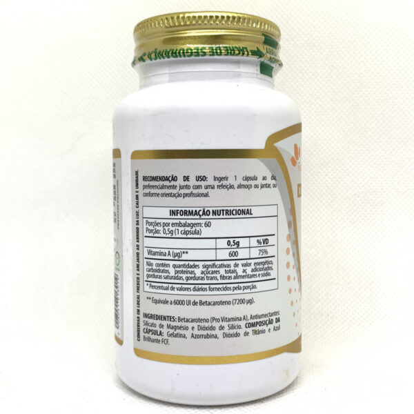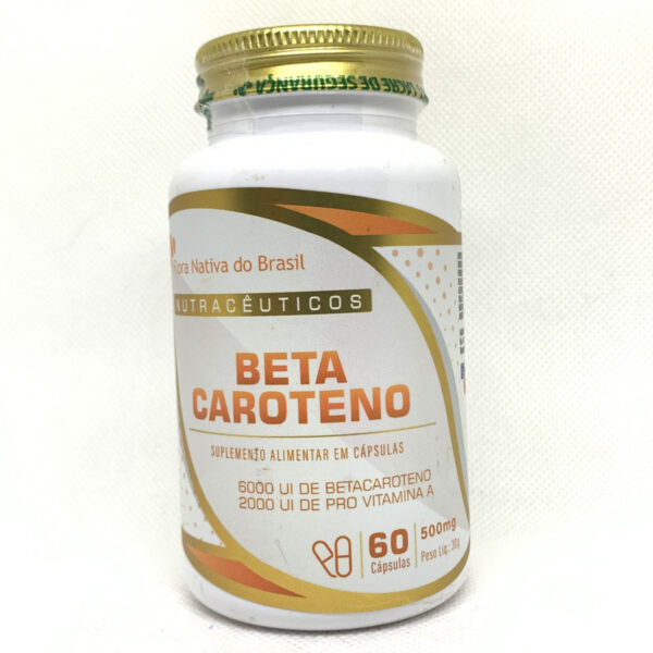 Suplemento com betacaroteno, um antioxidante natural que ajuda na proteção contra os radicais livres e contribui para a saúde da pele e visão.