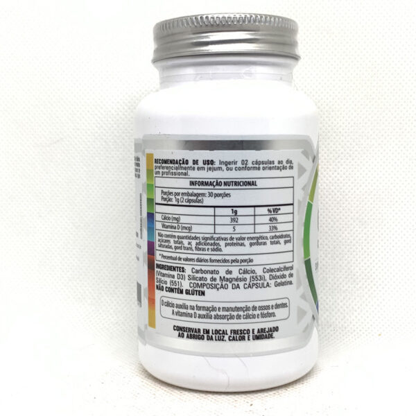 Suplemento com cálcio e vitamina D3, fundamentais para a saúde óssea, auxiliando na absorção do cálcio e fortalecendo os ossos.