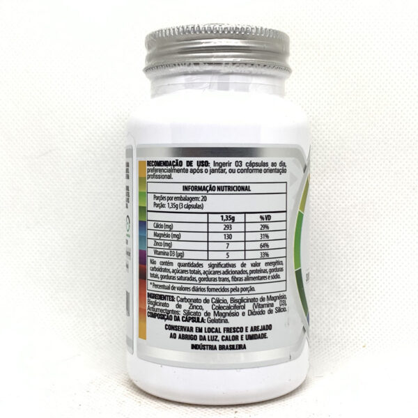Suplemento com cálcio, magnésio e zinco, que contribui para a saúde dos ossos, músculos e sistema imunológico.
