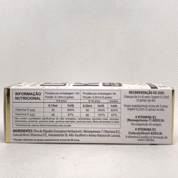 Forma líquida sublingual de vitamina D3 e K2, proporcionando rápida