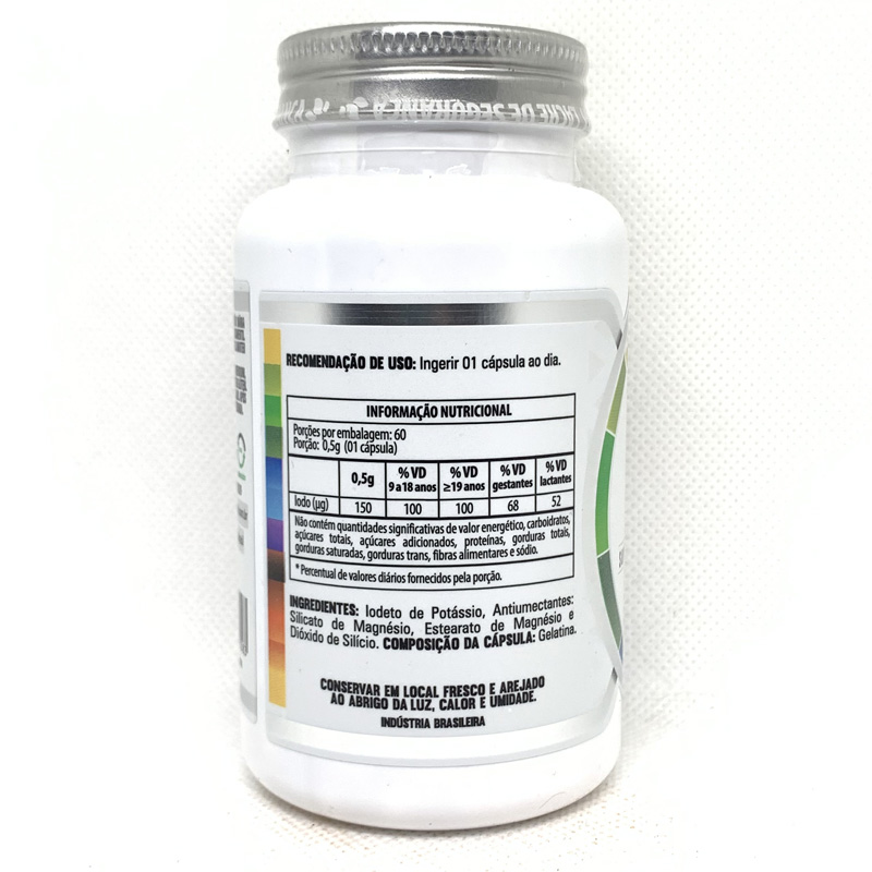 Suplemento de iodo, essencial para a saúde da glândula tireoide, ajudando na produção de hormônios que regulam o metabolismo e a energia