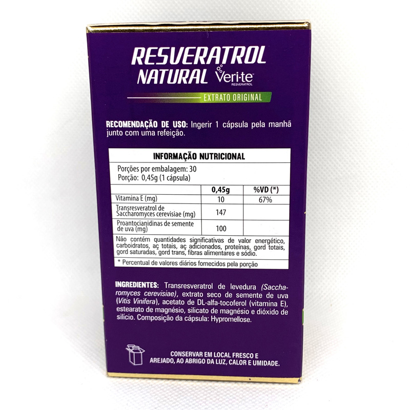 Suplemento com resveratrol, um poderoso antioxidante encontrado no vinho tinto e em frutas, que ajuda a proteger o coração e combater o envelhecimento precoce.